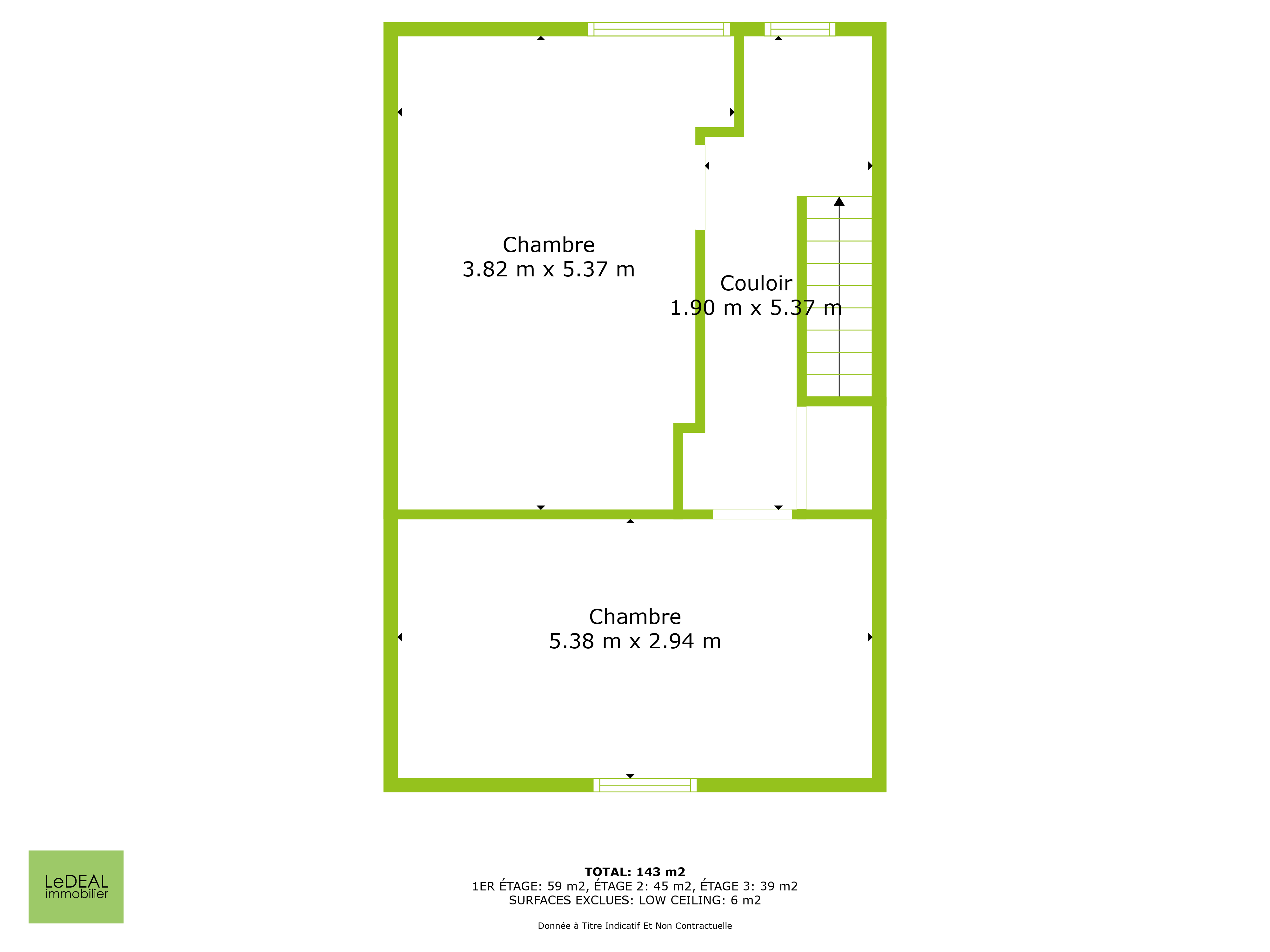 - Deux chambres de 11m² et 15m².