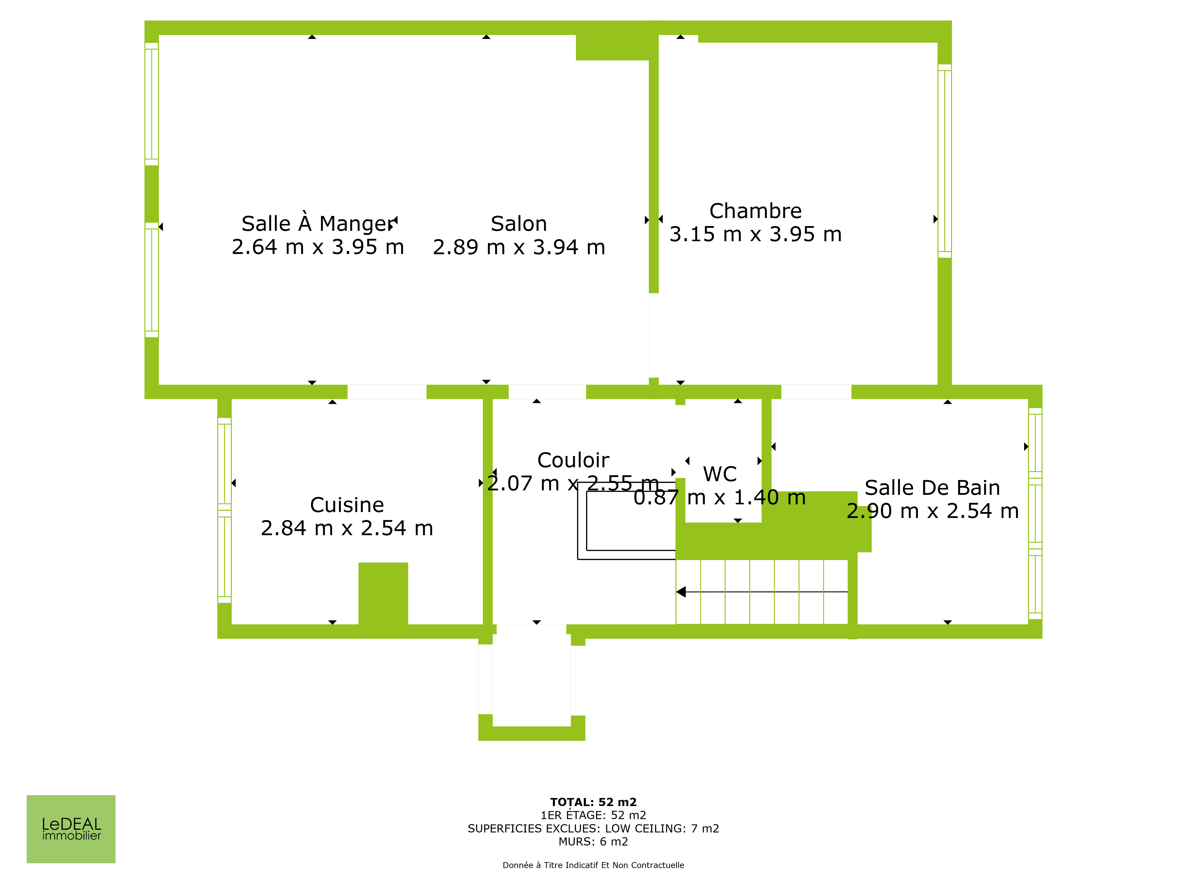 L'appartement est actuellement loué 540€/mois + 15€ de charge pour l'entretien des communs.